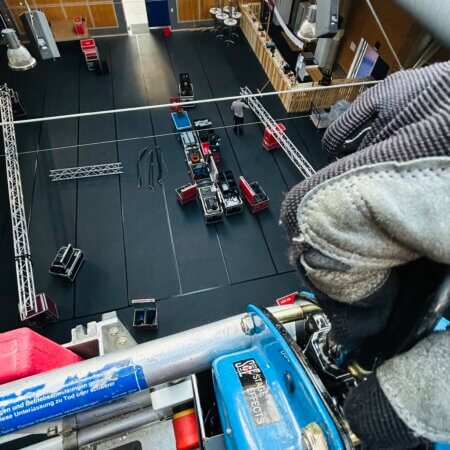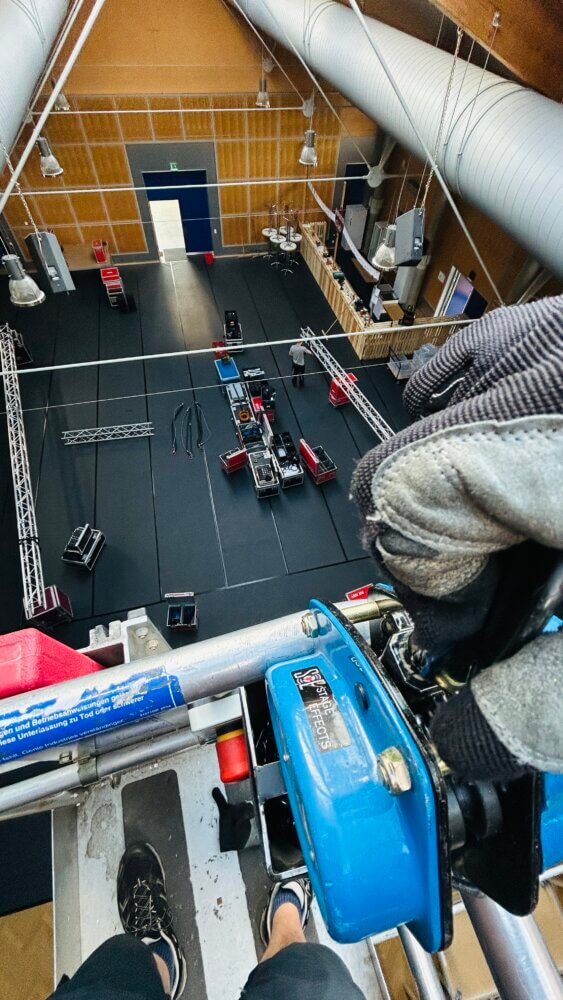 Gerade bei Events in Hallen spielt Sicherheit eine zentrale Rolle. Damit die eingesetzte Licht‑ und Tontechnik sicher und normgerecht an der Hallendecke installiert werden konnte, kamen unsere entsprechend ausgebildeten Riggerzum Einsatz. Durch fachgerechtes Rigging garantierten wir einen reibungslosen Ablauf und maximale Sicherheit für Gäste, Veranstalter und Künstler.